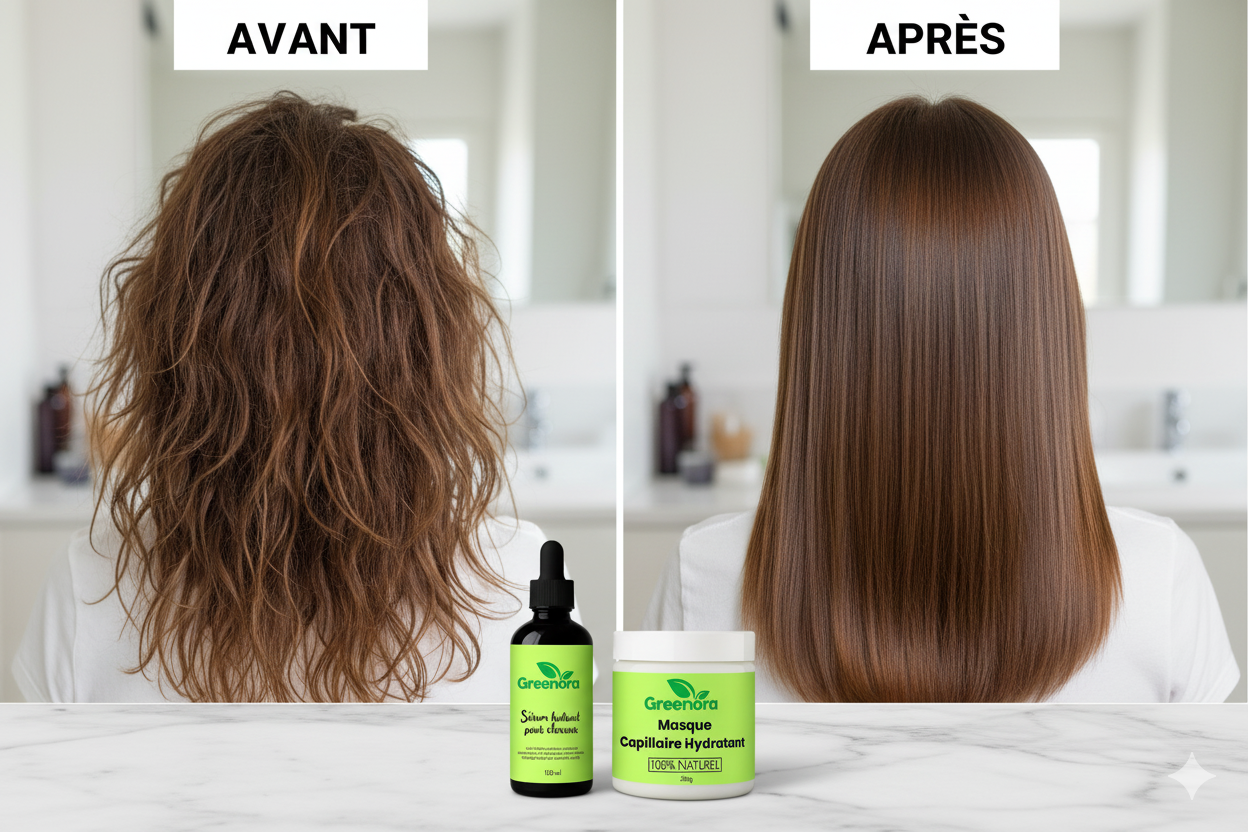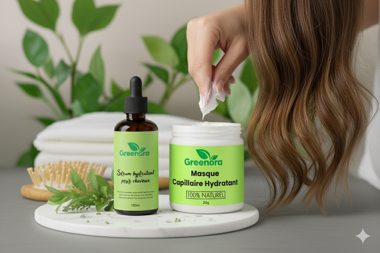🌿 باك Greenora لترطيب الشعر الطبيعي – سيروم و ماسك نباتي فاخر