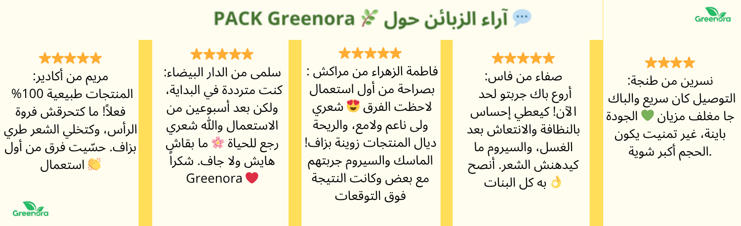 باك Greenora يمنحك شعراً ناعماً، لامعاً، وصحياً بفضل مكوناته النباتية الطبيعية 100٪.